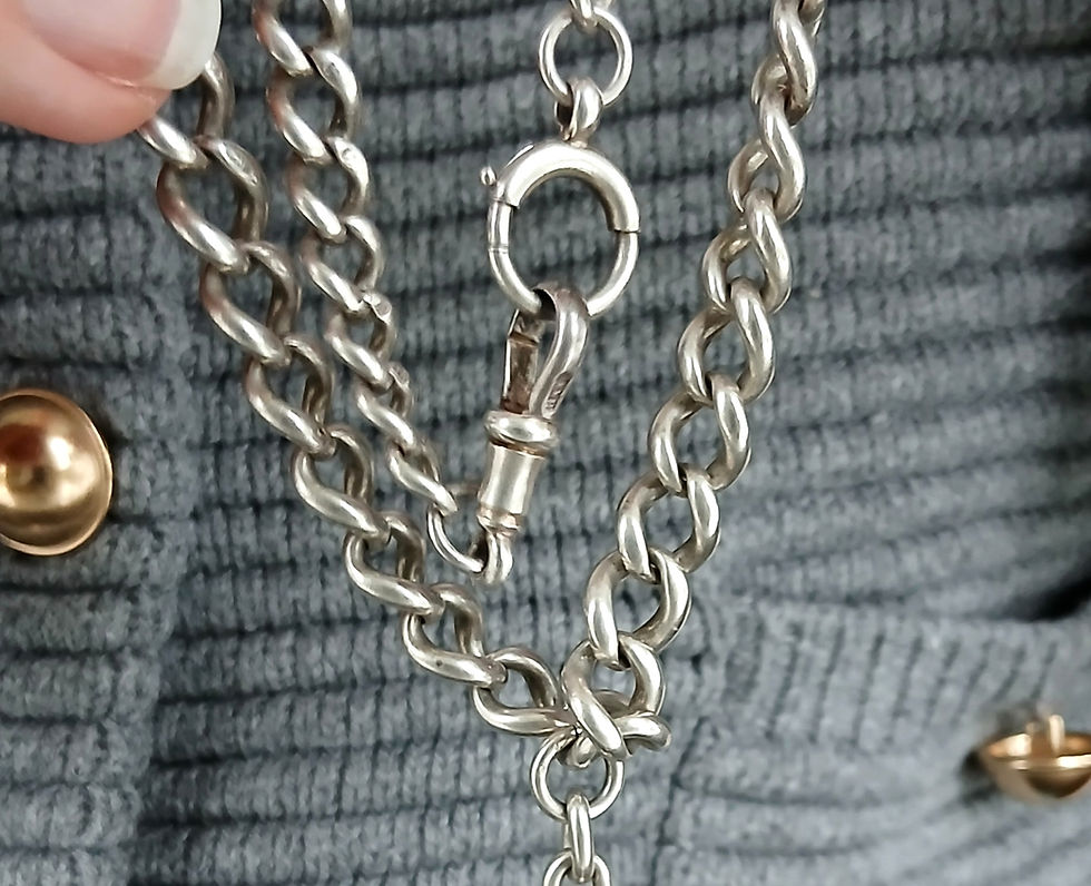Antique Silver Curb Chain with Dog Clip, Bolt Ring & removable T-Bar